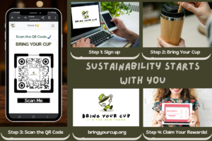 - Create a “Bring you cup” network for local businesses to support the initiative and be part of a reward system. Through this networking the project can be promoted directly through the businesses and vice versa, creating a win-win situation. The goal is for at least 50 local business to be part of this initiative.